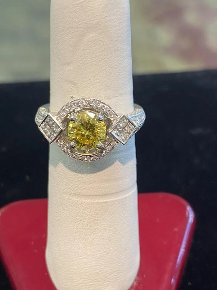 2) 1.17ct Yellow Diamond Accented with .23ctw White Diamonds Set in 6.0 g 18k White Gold – $6694.00