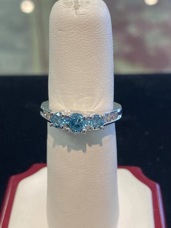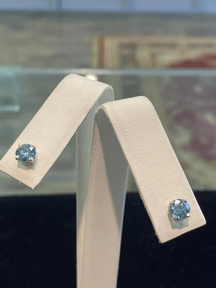 3) 1.15ctw Blue Diamonds Set in 14k White Gold – $3800.00