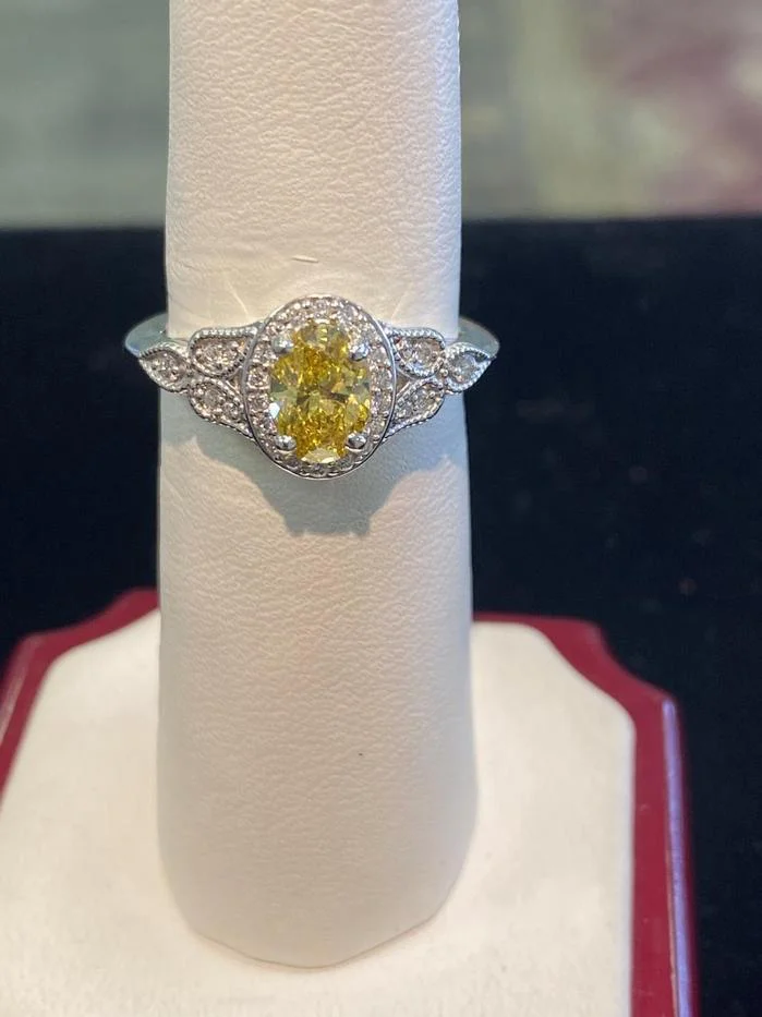 4) .80ct Yellow Diamond Accented with .16ctw White Diamonds Set in 3.74g 14k White Gold – $4350.00