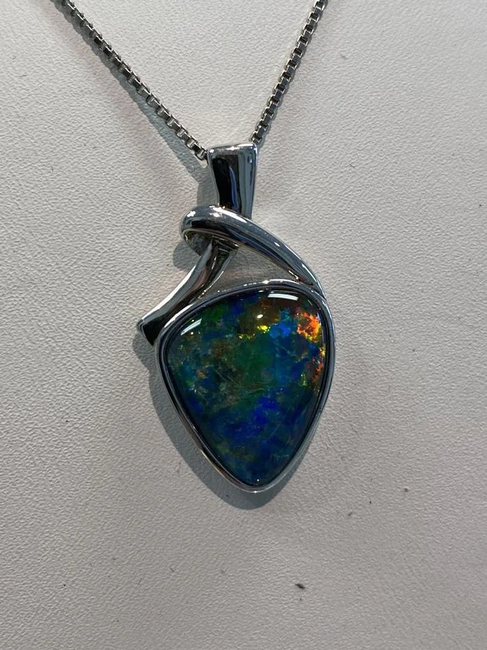 4) Australian Black Opal Doublet Set in Sterling Silver – $1125.00